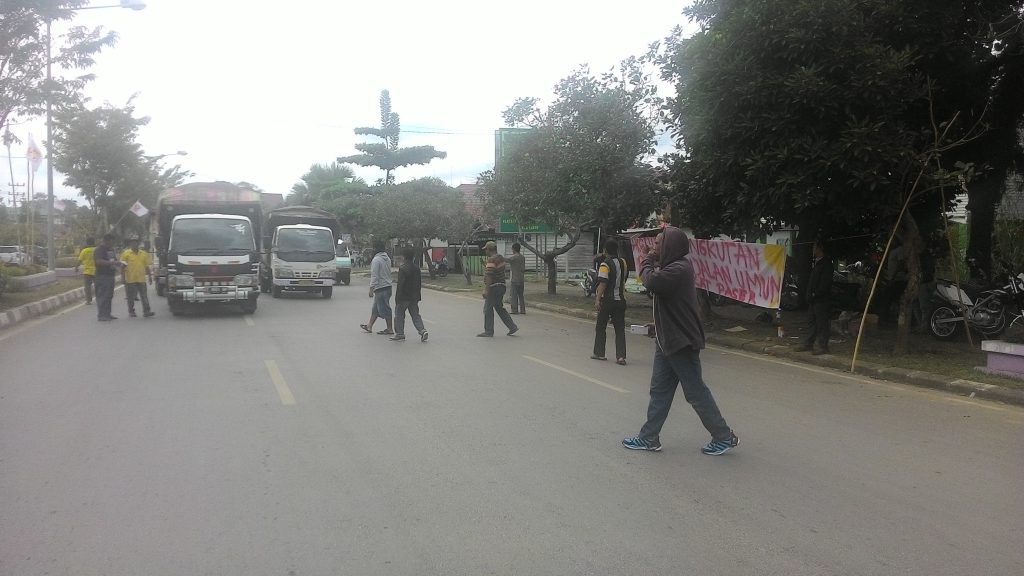 Sambil membentangkan spanduk bertuliskan “Aksi tolak angkutan batubara di jalan umum Masyarakat Paser” mereka juga mengecek kendaraan truk yang melintas, untuk memastikan apakah bermuatan batubara atau tidak.