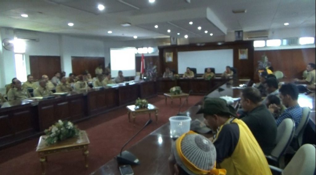 SOROT – Perwakilan masyarakat Kabupaten Paser yang melakukan aksi damai dalam menyampaikan aspirasi diterima langsung oleh Bupati Paser Yusriansyah Syarkawi, Senin (10/7/17) di ruang rapat Sadurengas, Kantor Bupati Paser.