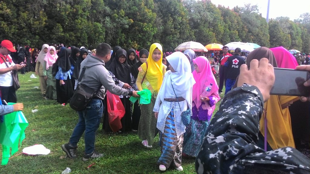 Berdasarkan pantauan media ini, aksi bagi-bagi tas itu lebih difokuskan didalam lapangan Garuda Tanah Grogot tempat para peserta berkumpul melakukan star.