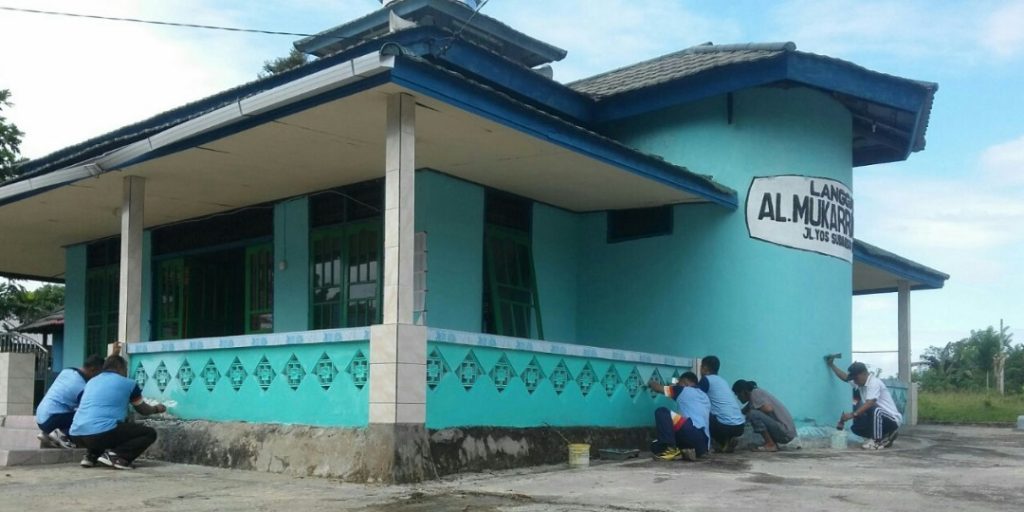 Bhakti sosial dalam rangka Hari Bhayangkara ke 72 itu, melaksanakan berbagai kegiatan, seperti pengecatan dinding dan pagar selasar Langgar serta pembersihan di lingkungan dalam dan luar langgar AL Mukarramah. (rsd)