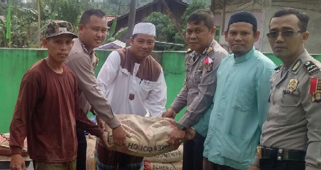 Penyerahan semen yang dilakukan oleh AKP Danang Aries Susanto diterima langsung Ketua Pondok Pesantren Mahligai ustadz M Jarkasih.