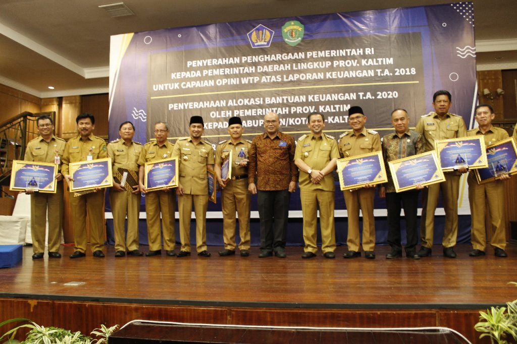 Penghargaan Opini WTP atas laporan keuangan tahun anggaran 2018 itu diserahkan Wakil Gubernur Hadi Mulyadi kepada para kepala daerah se-Provinsi Kaltim di ballroom Hotel Bumi Senyiur Samarinda, Selasa (22/10/19).