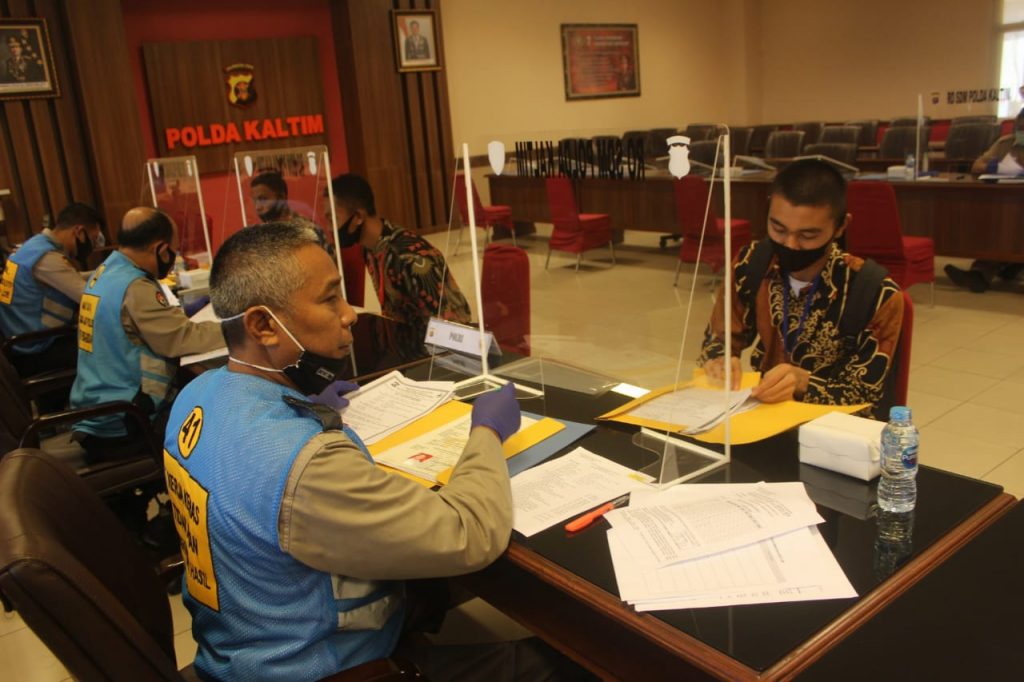BALIKPAPAN, Sorotonline.com,– Panitia Penerimaan Polri Daerah Kalimantan Timur melaksanakan tes Pemeriksaan Administrasi Tahap Akhir Calon Taruna Akpol dan Calon Siswa Tamtama Polri, bertempat di Ruang Rupatama Mapolda Kaltim, Selasa (28/07/2020).
