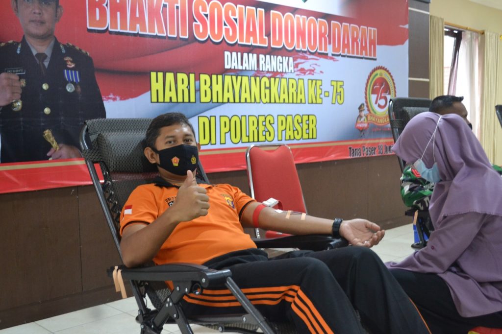 Kapolres Paser AKBP Eko Susanto yang juga turut ambil bagian dalam kegiatan donor darah tersebut menjelaskan, acara Itu salah satu rangkaian kegiatan menyambut HUT Bhayangkara ke-75 Tahun 2021.