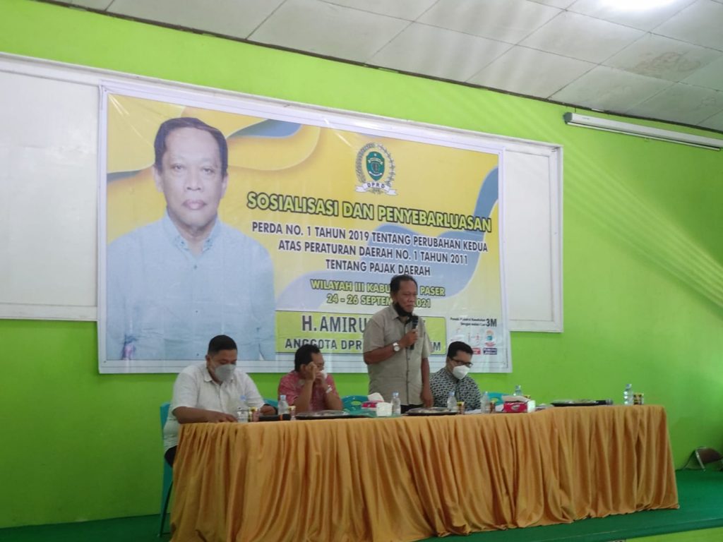 SOROTONLINE.COM – Anggota DPRD Provinsi Kaltim daerah pemilihan Paser-PPU, H. Amiruddin, kembali menggelar sosialisasi Peraturan Daerah (Perda) Provinsi Kaltim Nomor 1 Tahun 2019 tentang pajak daerah. Sosialisasi kali ini dilaksnakan di aula SMK 1 Tanah Grogot, Sabtu (25/09/2021).
