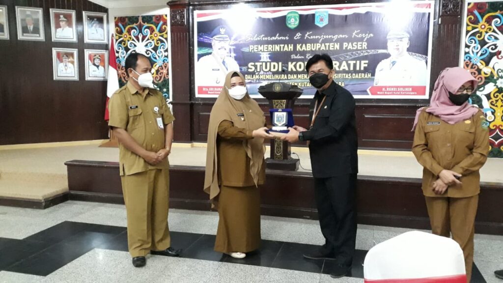 Wabup Paser diterima Sekretaris Daerah (Sekda) Kabupaten Kukar Drs. Sunggono, Kepala Badan Kesbangpol Kukar Rinda Desianti, dan Kepala Kemenag Kukar Mukhtar, di Pendopo Kabupaten Kukar.