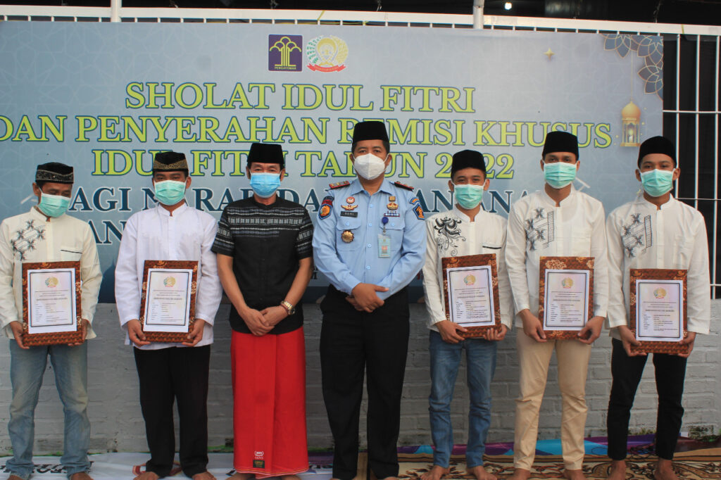 Usai Sholat Idul Fitri, dilakukan penyerahan Remisi Khusus Hari Raya Idul Fitri 1443H simbolis oleh Kepala Kantor Wilayah Kemenkumham Kaltim didampingi oleh Kepala Rutan Tanah Grogot kepada perwakilan WBP.
