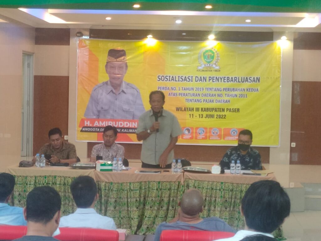 SOROTONLINE.COM – Legislator DPRD Kaltim daerah pemilihan (dapil) Kabupaten Paser dan Penajam Paser Utara (PPU) dari fraksi Golkar H. Amiruddin, menggelar sosialisasi Peraturan Daerah (Perda) pajak daerah, Sabtu (11/06/2022).