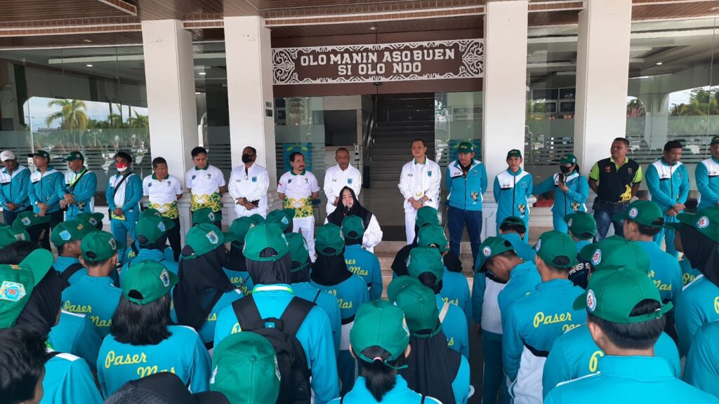 SOROTONLINE.COM – Wakil Bupati (Wabup) Paser Hj. Syarifah Masitah Assegaf,SH melepas atlet Kabupaten Paser untuk mengikuti ajang bergengsi Pekan Olahraga Pelajar Daerah (Popda) Kalimantan Timur (Kaltim) XVI 2022 dihalaman Kantor Bupati Paser, Senin (17/10/2022).
