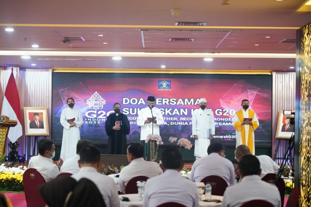 “Tinggal 26 hari lagi sebelum acara puncak G20 pada 15-16 November 2022 di Bali. Mari kita satukan hati dan pikiran seraya berdoa agar pada pelaksanaan dan setelah pelaksanaan, suasana tetap aman, kondusif, dan terhindar dari hal-hal yang tidak diinginkan,” kata Andap saat kegiatan doa bersama, Rabu (19/10/2022).