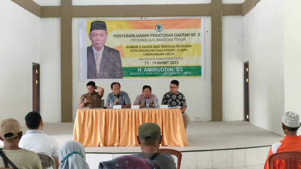 SOROTONLINE.COM – Anggota DPRD Provinsi Kaltim daerah pemilihan (dapil) Kabupaten Paser dan PPU, H. Amiruddin, menggelar sosialisasi Peraturan Daerah (Perda) Nomor 2 Tahun 2020 tentang Rencana Perlindungan dan Pengelolaan Lingkungan Hidup kepada masyarakat Desa Padang Pangrapat Kecamatan Tanah Grogot, di gedung aula desa, Sabtu (18/3).