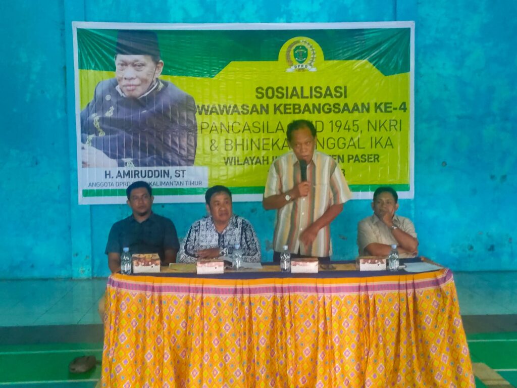 SOROTONLINE.COM – Anggota DPRD Provinsi Kaltim daerah pemilihan Kabupaten Paser dan Penajam Paser Utara, H. Amiruddin, menggelar sosialisasi wawasan kebangsaan Pancasila, UUD 1945, NKRI, dan Bhinneka Tunggal Ika, di Desa Tanah Periuk, Minggu (14/5/2023).