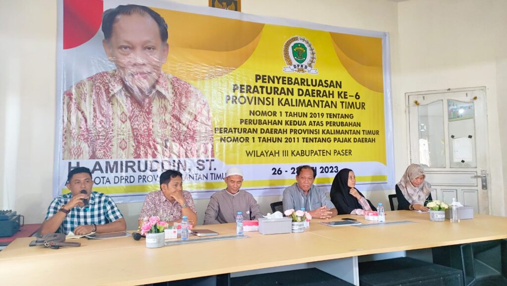 SOROTONLINE.COM – Anggota DPRD Provinsi Kaltim, H. Amiruddin, menyosialisasikan Peraturan Daerah (Perda) Kaltim Nomor 1 tahun 2019 tentang perubahan kedua atas Perda No. 1/2011 tentang pajak daerah, di Desa Lolo, Minggu (28/5/2023).