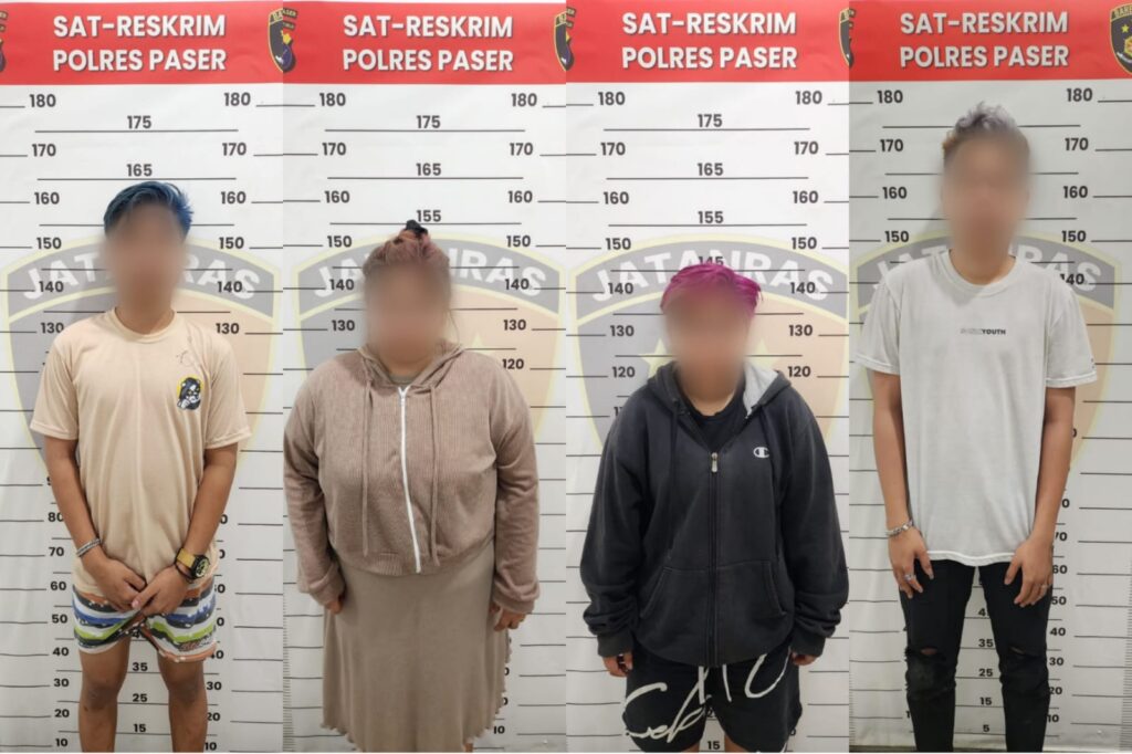 Kapolres Paser AKBP Kade Budiyarta, melalui Kasat Reskrim AKP Gandha Syah Hidayat, mengatakan dua pelaku pria dan dua lainnya perempuan, masing-masing berinisial MNA (19), ASP (18) YTS (28) dan HM (28).