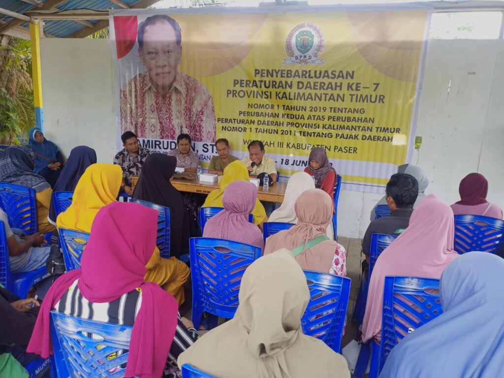 SOROTONLINE.COM – Anggota DPRD Provinsi Kaltim H. Amiruddin menggelar sosialisasi Peraturan Daerah (Perda) Provinsi Kaltim No.1/2019 tentang Pajak Daerah di Desa Muser, Kecamatan Muara Samu Kabupaten Paser, Sabtu (17/6/2023).