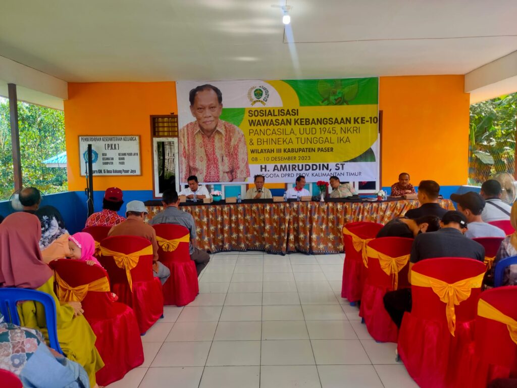 SOROTONLINE.COM – Anggota DPRD Provinsi Kaltim daerah pemilihan Kabupaten Paser dan Penajam Paser Utara, H. Amiruddin, menggelar sosialisasi wawasan kebangsaan di kantor Desa Keluang Paser Jaya (KPJ) Kecamatan Kuaro, Jumat (8/12/2023).