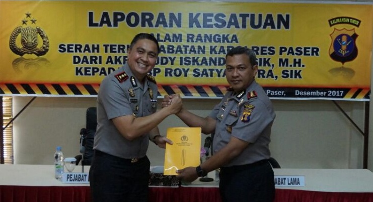 Read MoreSOROT – Acara pisah sambut Kapolres Paser dari AKBP Dudy Iskandar kepada AKBP Roy Satya Putra, Minggu (10/12/17) malam, digelar