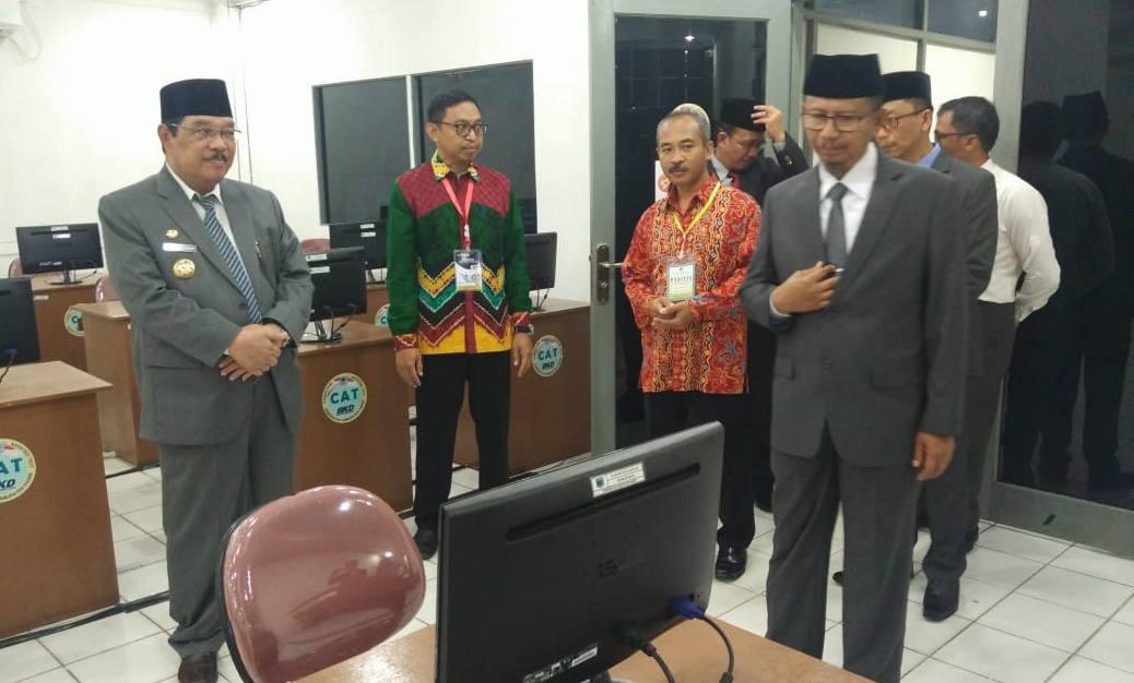 SOROT – Bupati Paser Yusriansyah Syarkawi meninjau pelaksanaan tes Calon Pegawai Negeri Sipil (CPNS) di Kantor Badan Kepegawaian Pendidikan dan