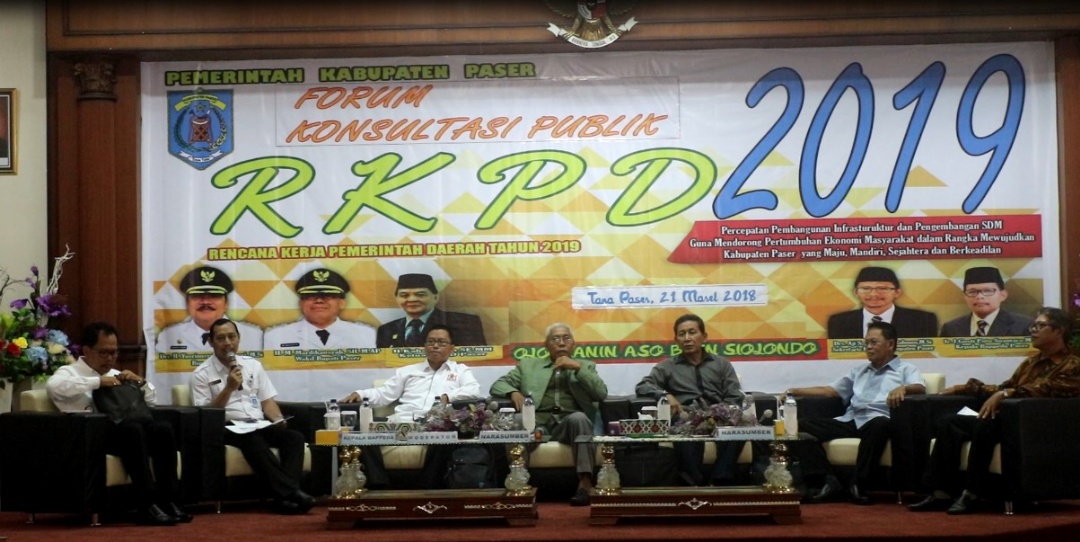 SOROT – Badan Perencanaan Pembangunan Daerah (Bappeda) Kabupaten Paser, melibatkan praktisi lintas sektor menggelar konsultasi publik, Rabu (21/3/18) di Pendopo
